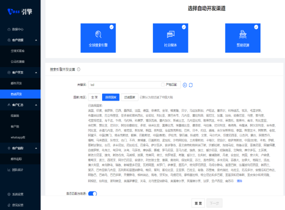 全球主流搜索引擎获客,数据实时抓取,配置高级算法,轻松匹配目的国、采购商 身份、当地语种,深度挖掘当地买家资源
