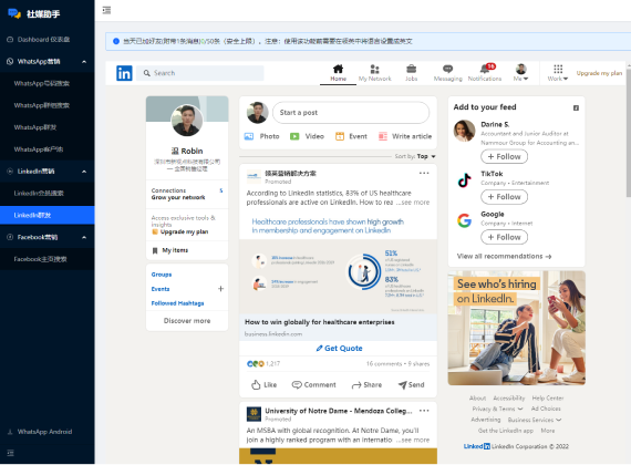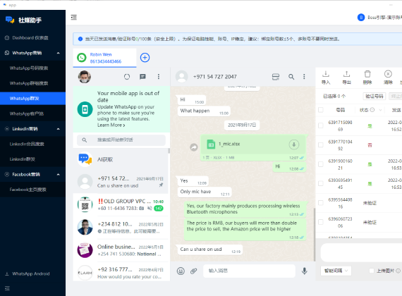 • 通过社媒助手LinkedIn采集群发,Whatsapp采集群发快速扫清一批目标客户。